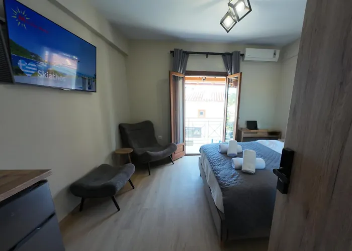 A környék látnivalói közé tartozik a 17 percnyi sétára található Szkiáthosz kikötője, az Εκκλησία Παναγία Εικονίστρια pedig nagyjából 4 km-re található az 1 szobás Nel Paese Room Szkiáthosz.